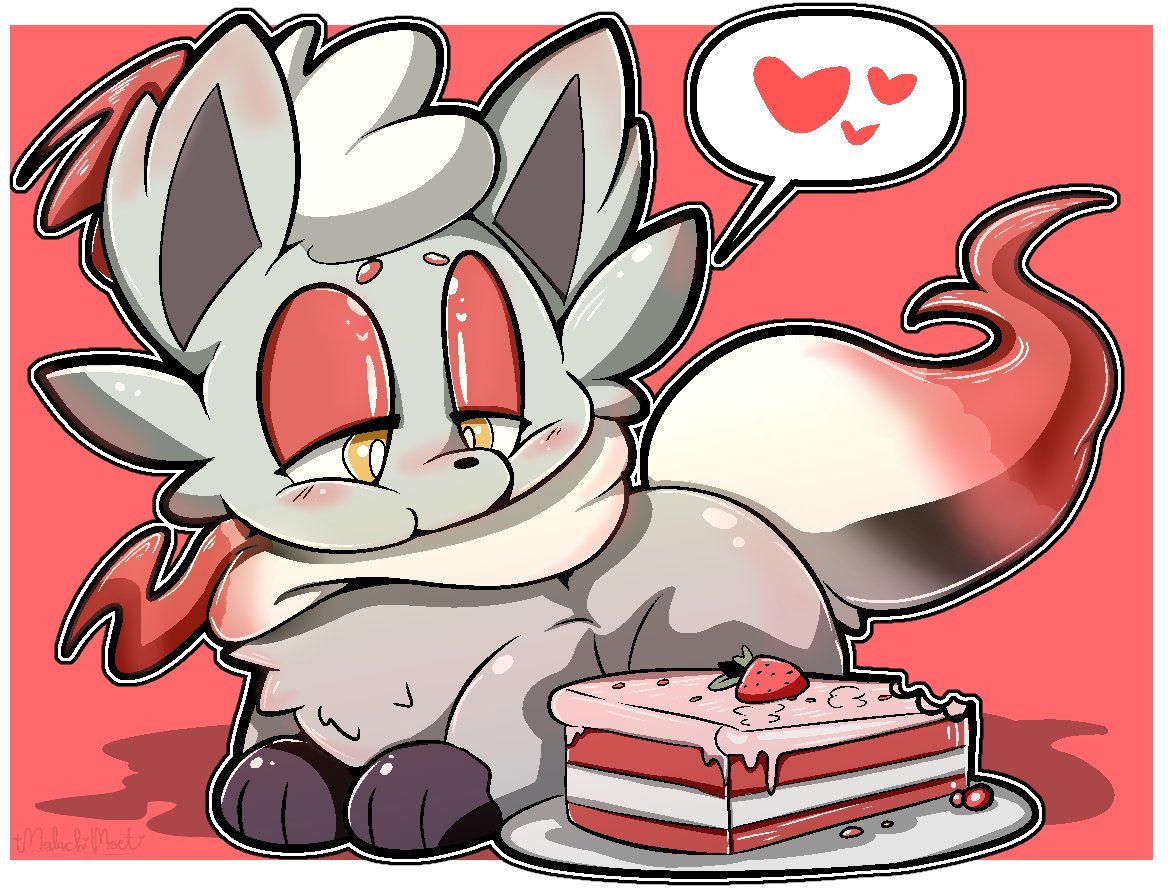 Strawberry Shortcake + Hisuian Zorua = Strawberry Shortzorua! Done in an Art Trade game with @juancho_arts . #Strawberry #Cake #Zorua #HisuianZorua #Pokemon #Fanart