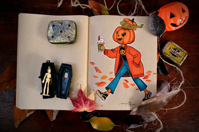 I'm so in love with the fall color palette 😍🍁🍂🍃 #art #artistamexicana #drawing #calabaza #pumpkin #cute #cuteart #inktober2021 #inktober #fall #autumn #fallcolors #otoño #lindo #tierno #hojasdeotoño #zombiecat #ilustracion #ilustradoresmexicanos #ilustradora