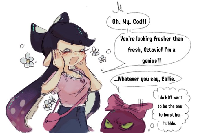 Callie minigame part 3! Callie meeting.. Kali! A former Elite mechanician. She's an absolute romantic. Both went into a fancy date. She knows how to be bold and flirty at the same time. 💗 Sharing is caring, after all! #Splatoon3 #splatoonart #calliesplatoon #Squidsisters