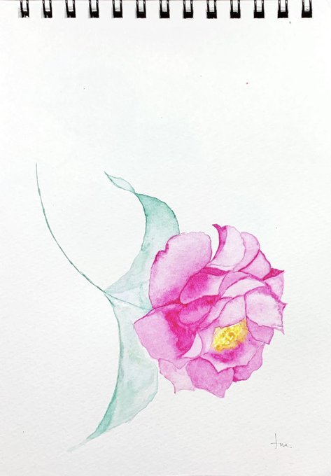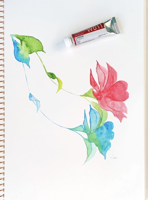#ホルベイン 水彩総選挙2021の推しで迷ったもうひとつのカラーパレット 【冷たい風】+W011 CARMINE 今回は箱推し気味で【東雲】を選びました #山茶花 #透明水彩 #watercolor #Camelliasasanqua #holbein #絵描きさんと繋がりたい