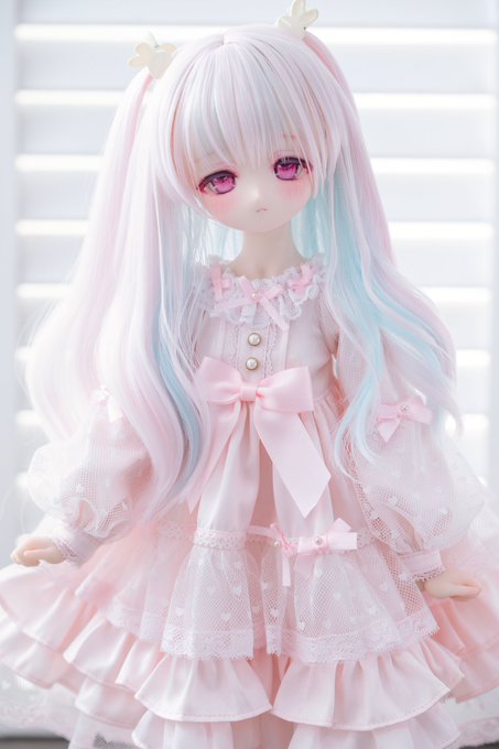 以前サンプルを紹介していた、まるんとしたクラゲのようなウルフウィッグの量産が完成しました🪼🪼 水色×白、ピンク×白、黒×紫の三色展開です。 おそらく来月にはBOOTHで販売できるかと思いますのでお楽しみに🫶🏻 #Candyウィッグ twitter.com/CandyHouse_dol…
