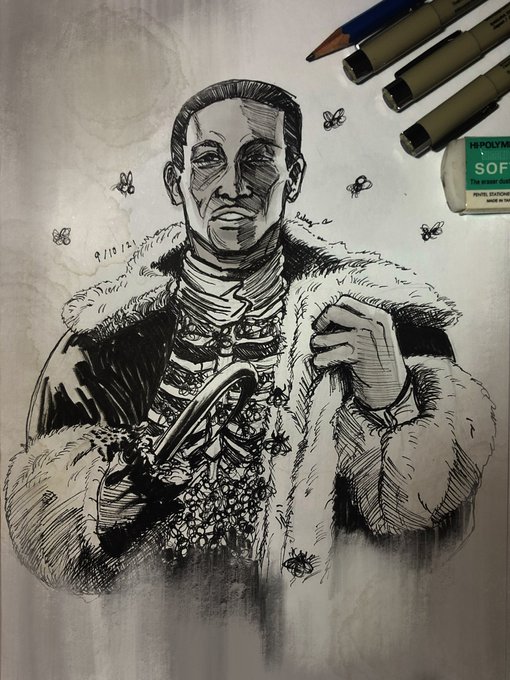 #inktober2021 day 23, and we're off to Chicago for the day, everyone got their mirrors handy? Now repeat after me - Candyman, Candyman, Candyman, Candyman... #candyman #bees #clivebarker #horrormovies #fineliner #steadler instagr.am/p/CVXXdG1sPZj/