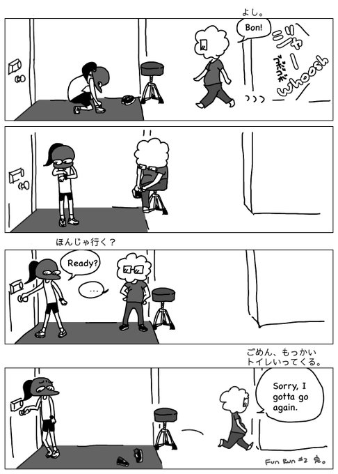 ランニング直前によくある現象。 Pre-run ritual #CapとFuzzyのレッツFunRun #漫画が読めるハッシュタグ #コミックエッセイ #ランニング #ジョギング #comic #jogging #running