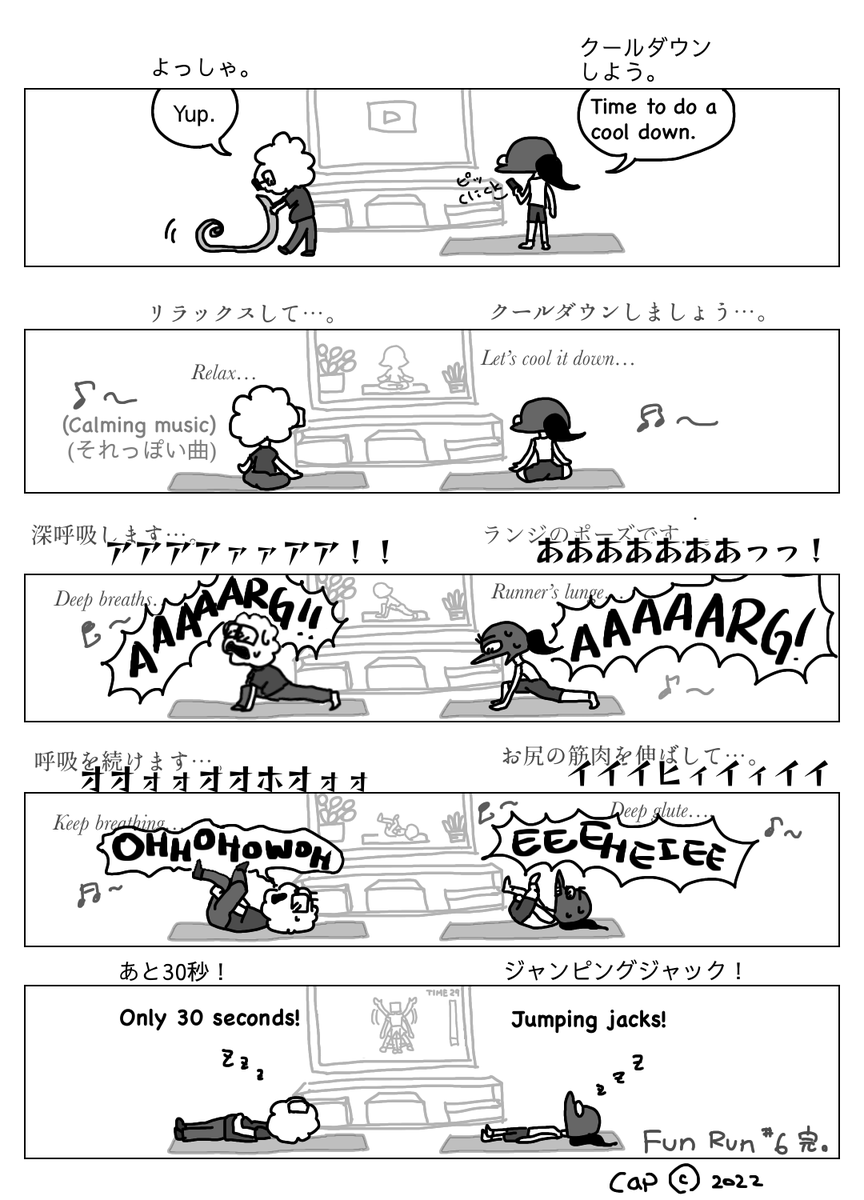 クールダウン Cool down #CapとFuzzyのレッツFunRun #漫画が読めるハッシュタグ #コミックエッセイ #ランニング #ジョギング #comic #jogging #running