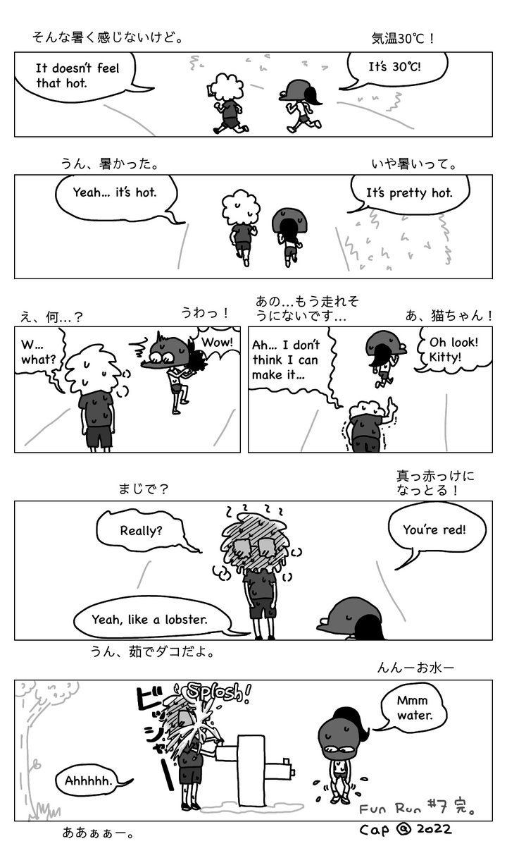 暑い日のランニング Heat run #CapとFuzzyのレッツFunRun #漫画が読めるハッシュタグ #コミックエッセイ #ランニング #ジョギング #comic #jogging #running