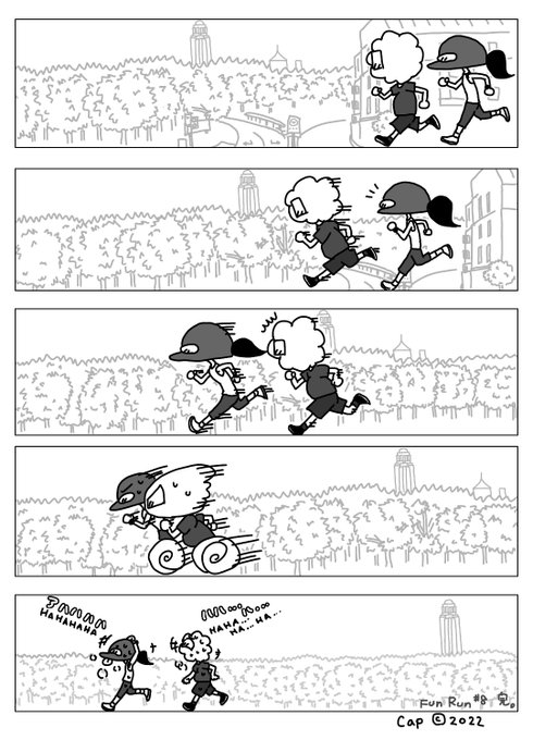 負けず嫌いのランニング Competitive run #CapとFuzzyのレッツFunRun #漫画が読めるハッシュタグ #コミックエッセイ #ランニング #ジョギング #comic #jogging #running