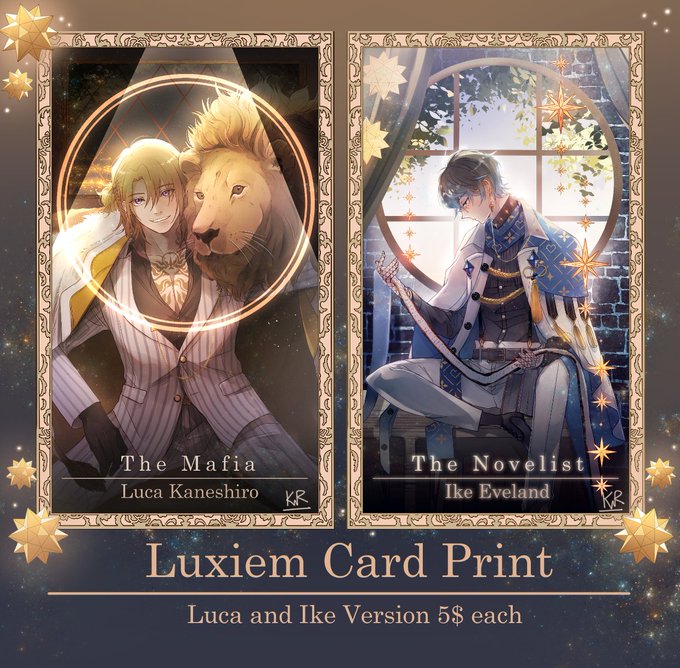 Starting from our first awesome artist, @rinarurin 🐨 Bringing you these aesthetic card illustrations of Luca Kaneshiro & Ike Eveland!✨ #IkeEveland #Ikenography #lucakaneshiro #drawluca #NIJISANJI_EN #Luxiem #fanmerch #cardillustration #rinarurin
