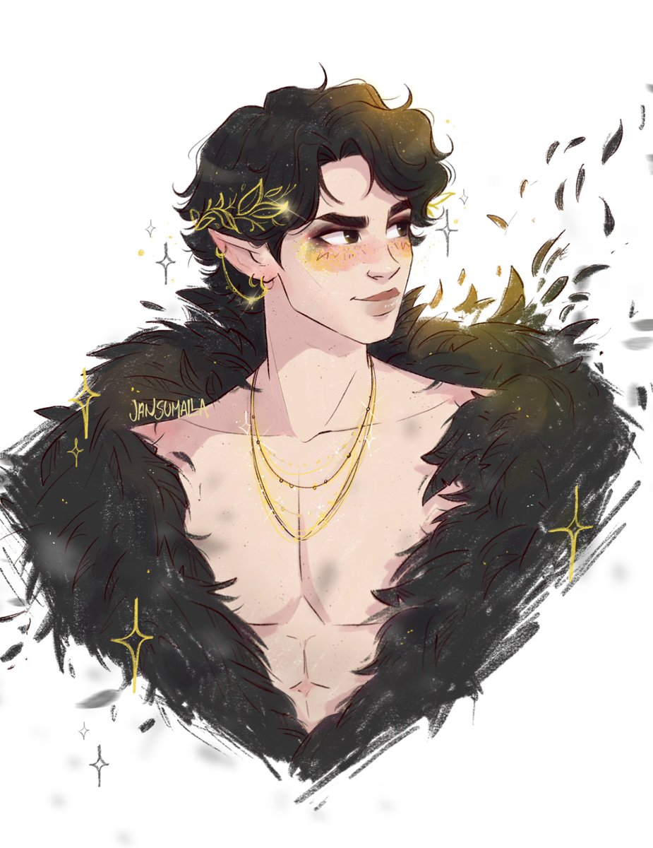 Cardan. ("The Folk of the Air" by @hollyblack ) #TheFolkOfTheAir #Cardan #Faerie #king #boy #crown #feathers #fantasy #HollyBlack #books #fanart #art #illustration #sketch #PhantomRin