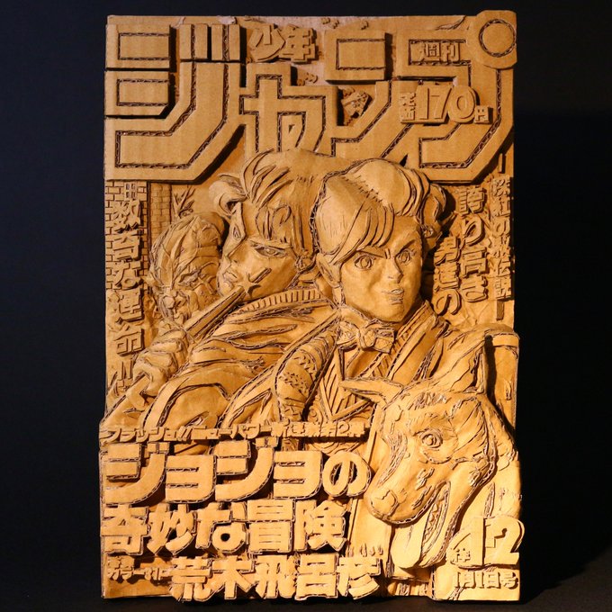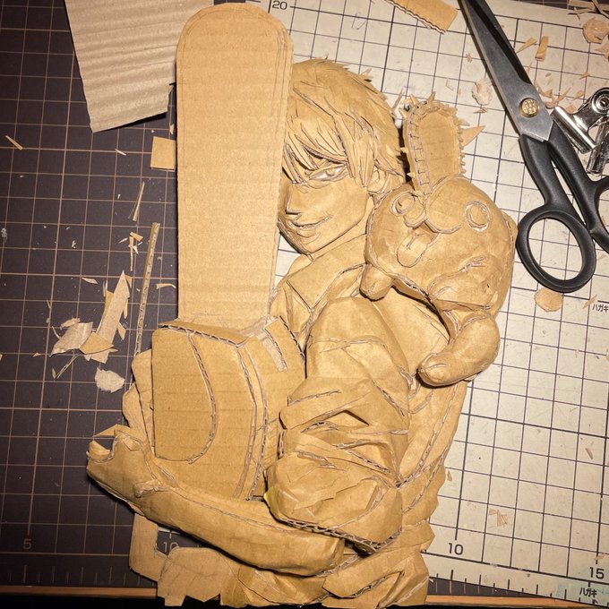 ダンボール女子、大野萌菜美の最新作です。チェンソーマン新連載時2019年1月1日1号の週間少年ジャンプの表紙、完成しました!縦25.7㎝。図面なし1ヵ月で仕上げました。マキマさんを薄く表現してみました! #チェンソーマン #chainsawman #ダンボール #cardboard #藤本タツキ instagram.com/p/CnWmQhNLIIz/…