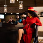 A sophisticated criminal drinks their martinis shaken, not stirred. I LOVE this shot because of the whole environmental portrait vibe! #CarmenSanDiego #Cosplay #WhereInTheWorld #CarmenSanDiegoCosplay #FarpointConvention