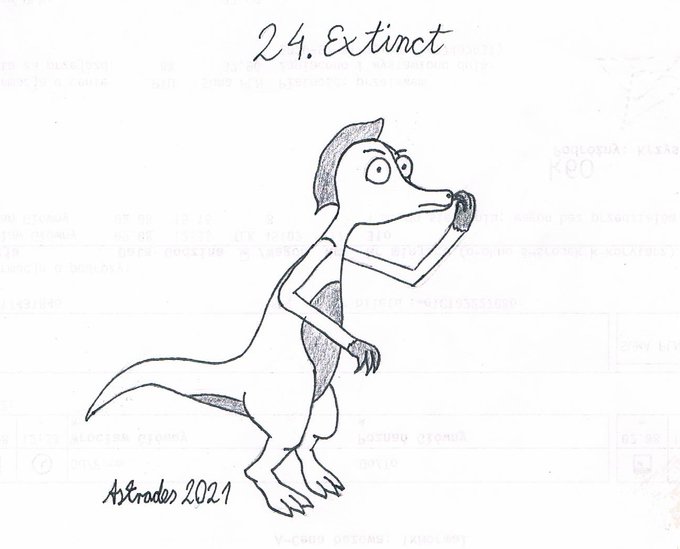 Rysuję sobie inktobera i dziś narysowałem takiego wymarłego, niezbyt rozgarniętego koleżkę. --- I'm drawing inktober and for today i drew this little dino fellow. He isn't very bright. #inktober #inktober2021 #challenge #day24 #extinct #cartoonish #dino #dinosaur #drawing