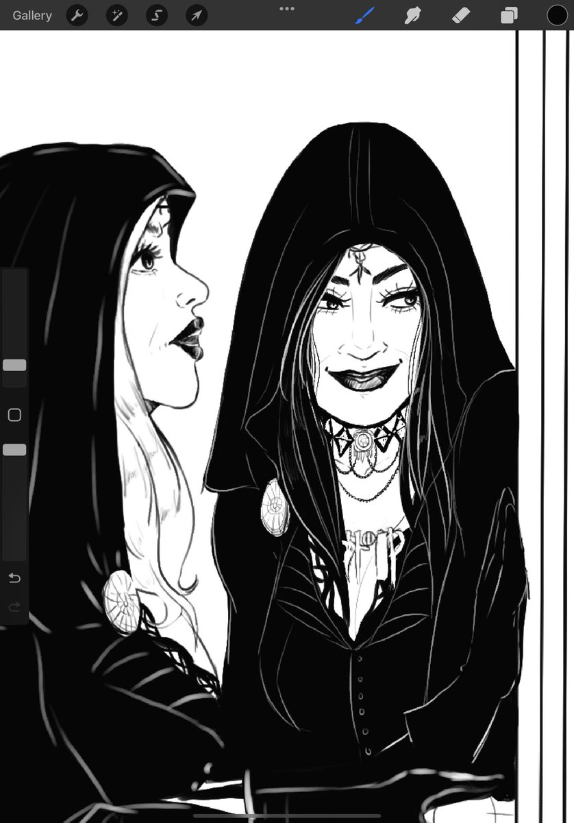 Another #WIP ! This time for a TikTok/reel with my favorite psychotic daughters (Daniela is my fave too she’s just not in frame yet lol) 😌🪰🖤 #ResidentEvilVillage #beladimitrescu #cassandradimitrescu #fanart