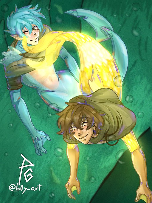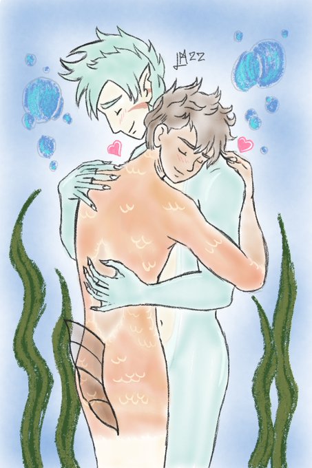 Due to the season 3 premiere, I couldn't help but draw these two cuties. The story and characters are captivating. It warms my heart. May Siren and Kappa's love win in the end. #castleswimmer by @wendycomics m.webtoons.com/en/fantasy/cas… #Fanarts #LGBTQIA #comic
