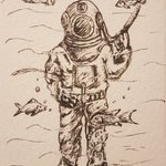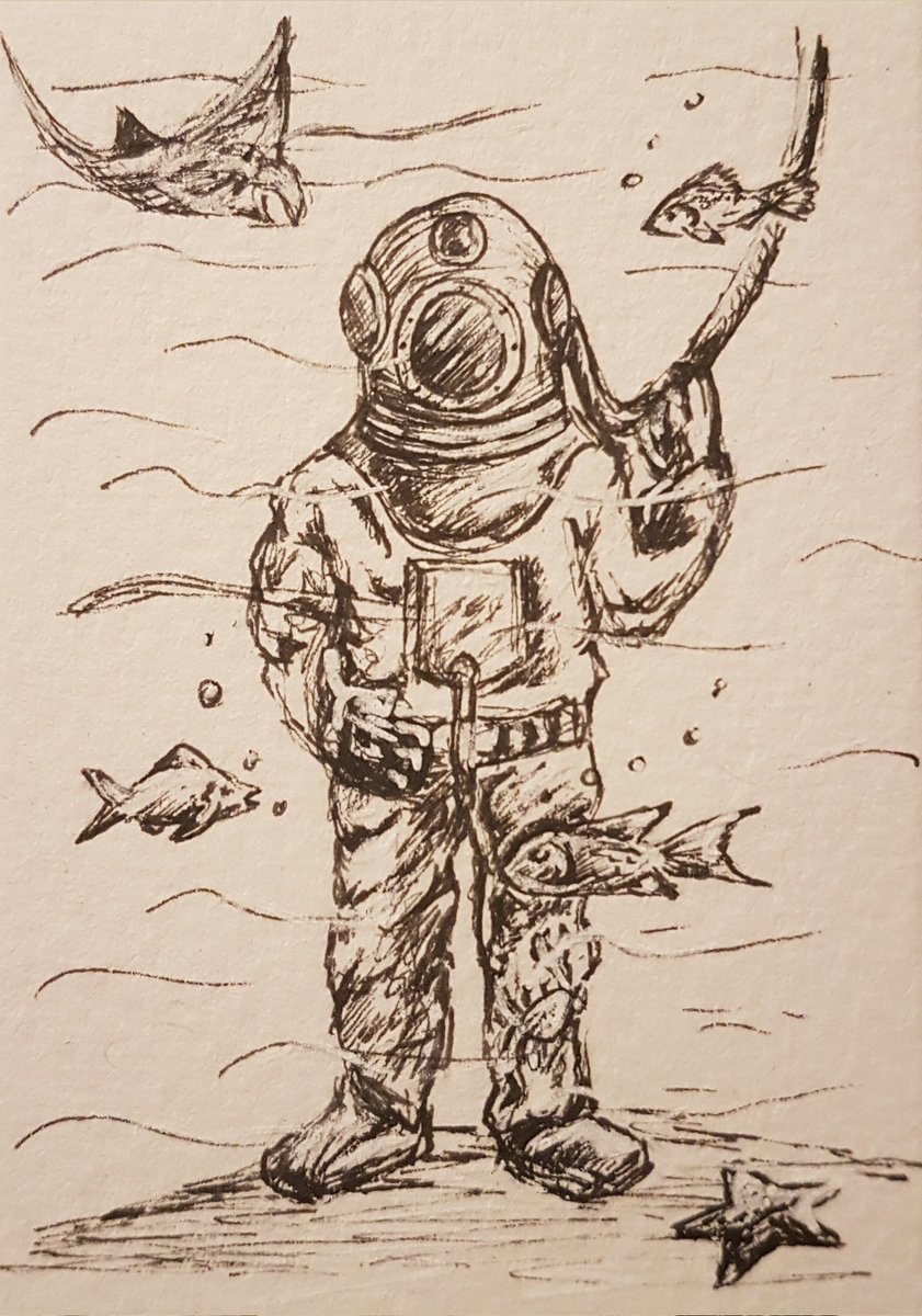 I've caught up on my @inktober pieces. 2. SUIT 3. VESSEL 4. KNOT At least I can share them with you Twitter 😉 #divingsuit #deepseadiver #kraken #knotbird #wadingbird #birdart #inktober2021 #inktober #catchup #penart #aceo #atc