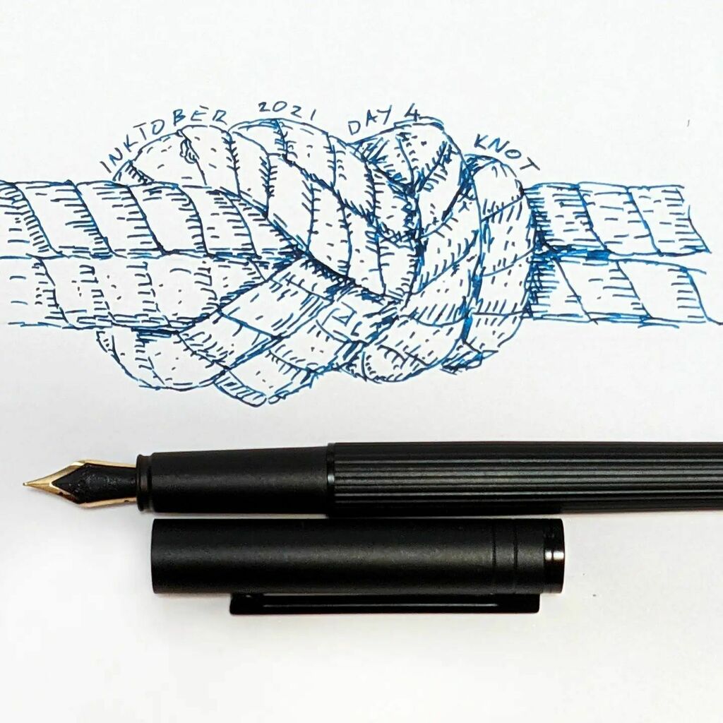 Inktober day 4: knot. Already paying catch-up. . #inktober #inktober2021 #day4 #catchup #knot #ink #tealink #lamycrystalamazonite #pen #fountainpen #hongdian #figureofeight #bight #climbing #drawing #art