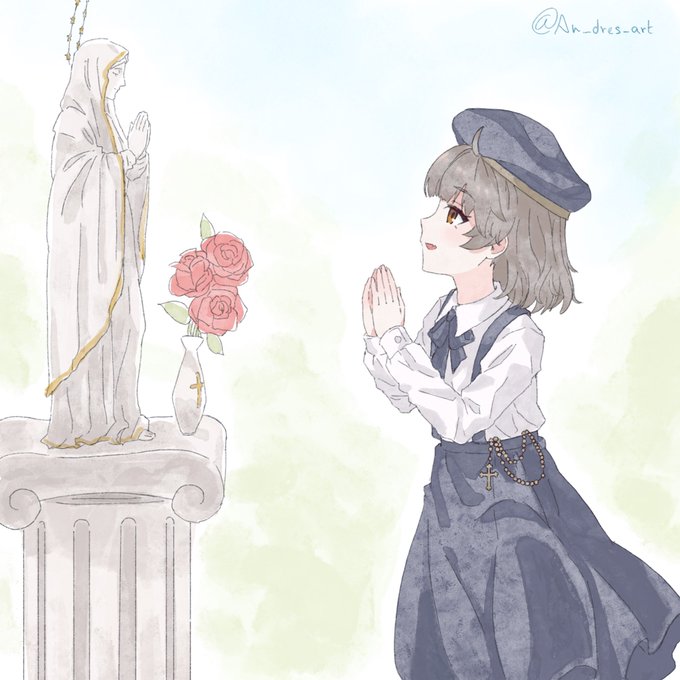 Hatoba Tsugu is Catholic! The first ko-fi sketch commission, thanks so much for the support! #CatholicTwitter #rkgk #Procreate