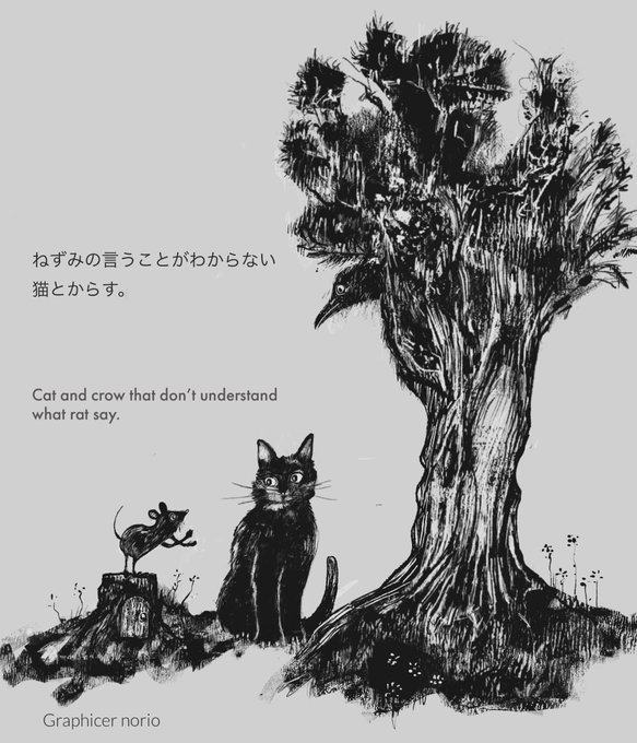 絵本風の3人と老木。 絵本はカラーで描こうかな。 この作風も極めたいし? モノクロは好きです。 #illustraion #drawing #illustraionart #picturebook #childrenbook #cat #catlover #猫好き #ともだち #えほん
