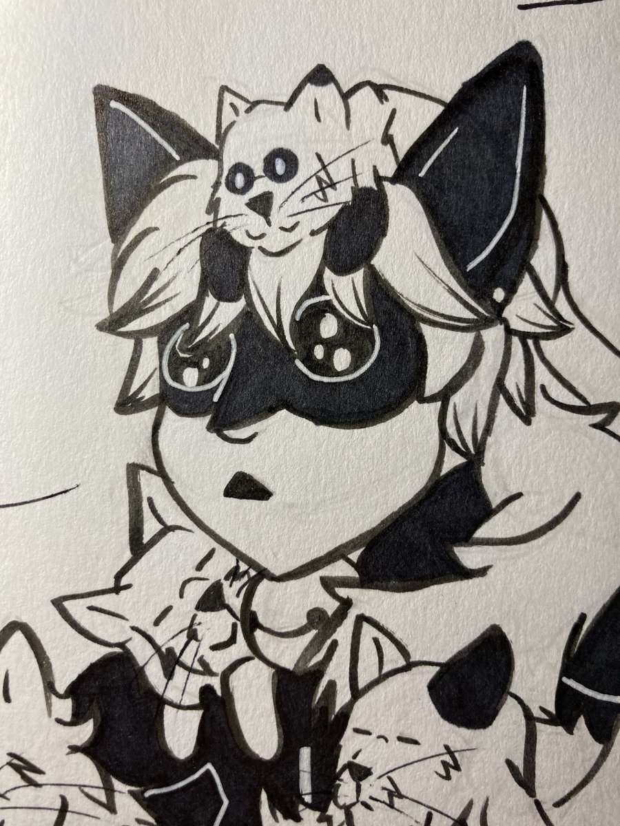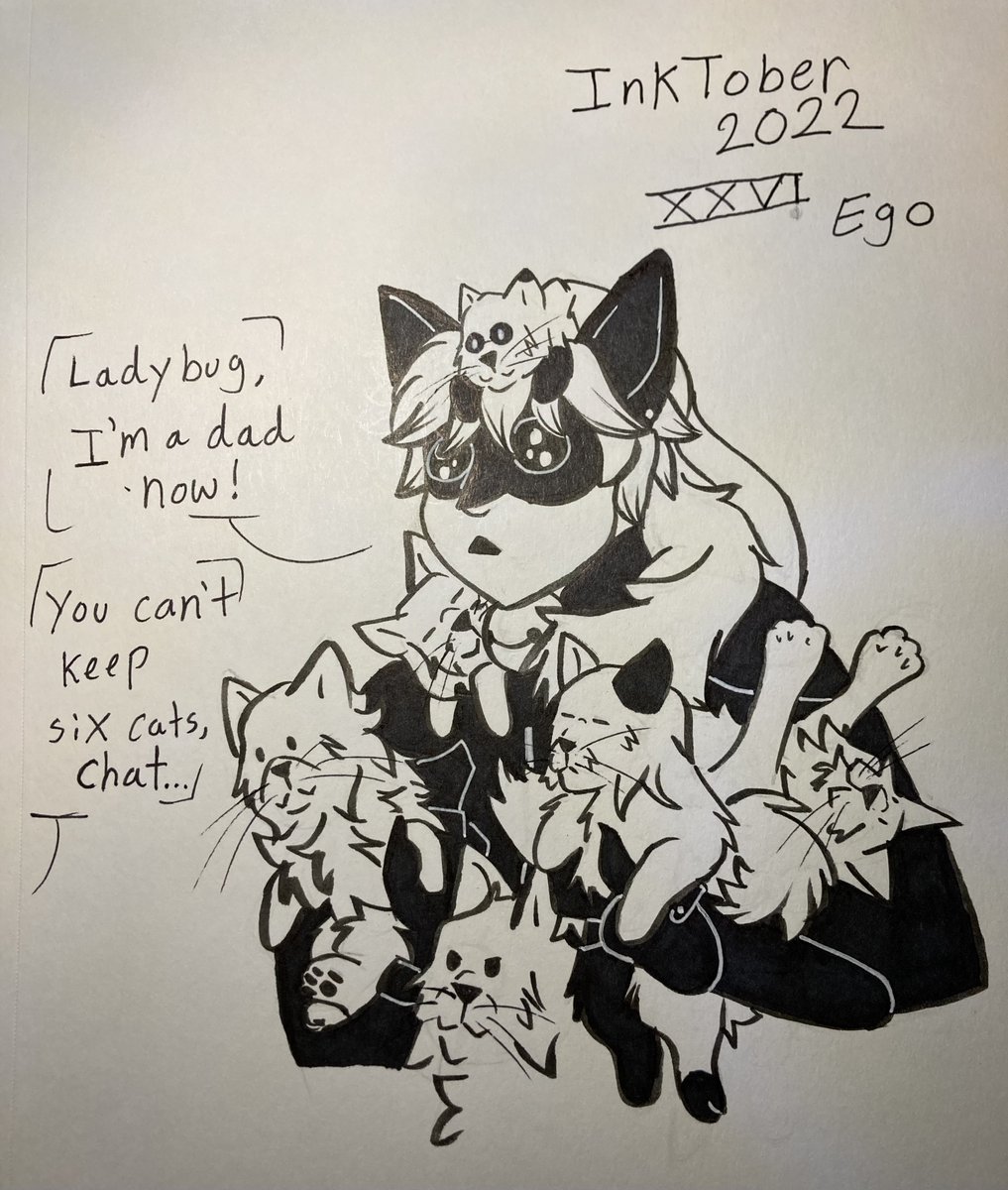 Inktober day 26 ego, an alter one at that #traditionalart #ink #inktober #inktober2022 #MiraculousLadybug #Catnoir #cats #fanart