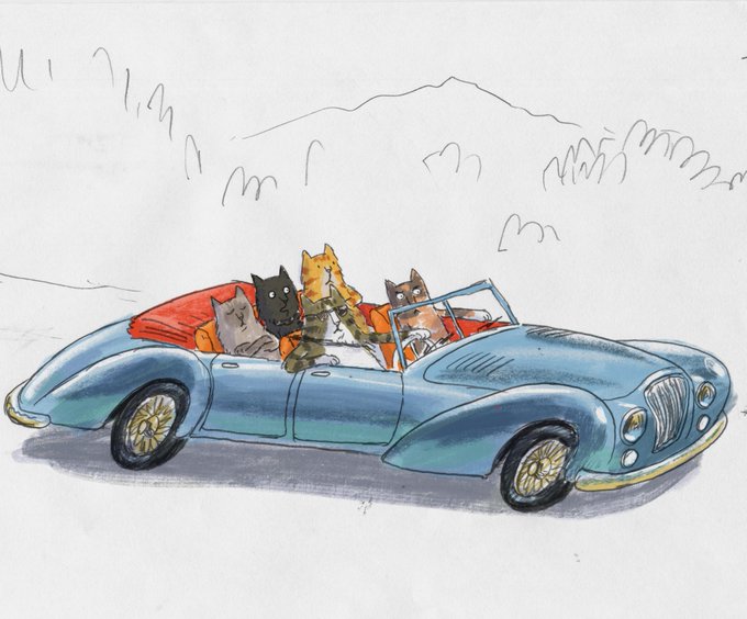 Happy #caturday! Cats in a car from a story in progress. #CatsofTwittter #kidlitart #childrensbooks #childrensbookillustration #illustratorsontwitter #workinprogress #catsincars #jasonchapman