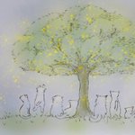 友だちのネズミとカラスとミツバチ みんなが集まる広場 木や草花ももとだち #illustration #drawing #illustraionart #graphicart #picturebook #childrenbook #cat #CatsofTwittter #CatsLover #絵本 #猫好き