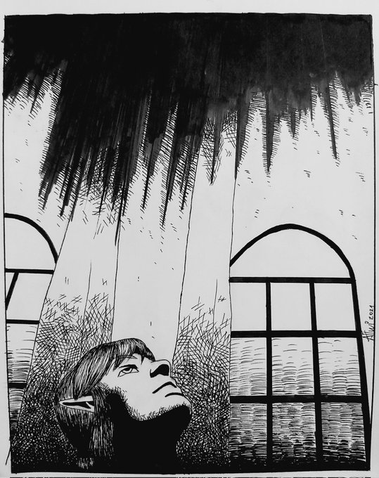 Imktober 2021. Day 13 - Roof. Is there even one? #inktober #inktober2021 #inktober2021day13 #roof #ceiling #BreathoftheWild #botw #link #リンク #ゼルダの伝説