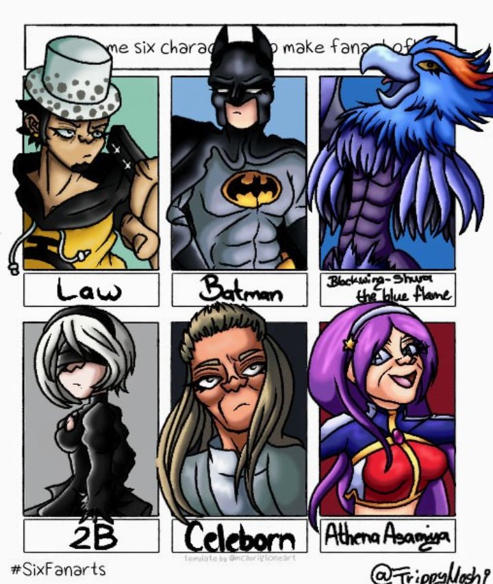 I finally finished this!!!! I'm so happy with the way this turned out. I hope you guys like it too. #SixFanarts #Law #Batman #blackwingshuratheblueflame #2b #celeborn #Athena #art #ArtistOnTwitter #artist
