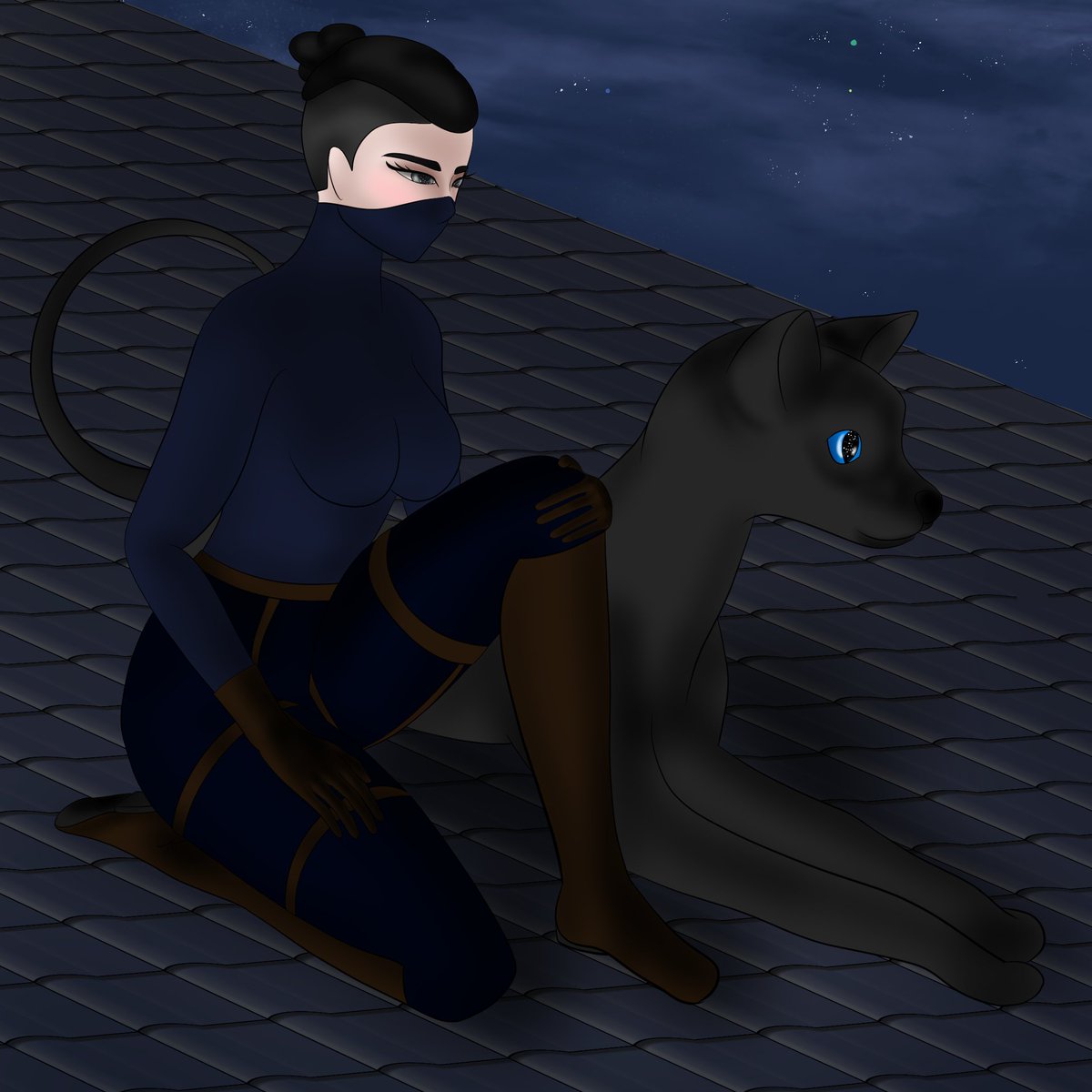 #Inktober day 12 - Yana and Shadow at work🌒🌕🌘 #roof #inktober2021 #art #Webtoon #WebtoonCanvas #Celestis #digitalart #artist