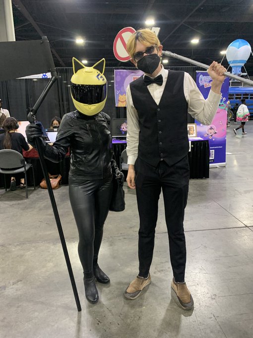 I am so glad that I wasn’t the only Durarara cosplayer at #momocon. I wish I had a third picture because an Izaya did get their photo with me. #MomoCon2022 #durarara #shizuoheiwajima #celtysturluson #anime #cosplay