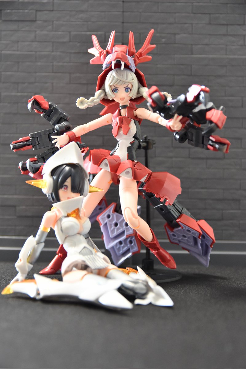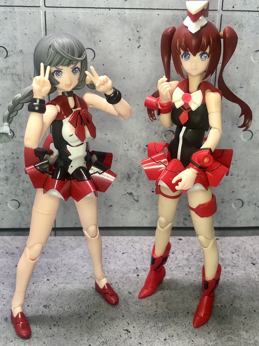 マジ子とツーショット。意図せずカラーリング似ちゃってるなぁ #kotobukiya #megamidevice #メガミデバイス #chaosandpretty #コトブキヤ #赤ずきん #マジカルガール #カオプリ