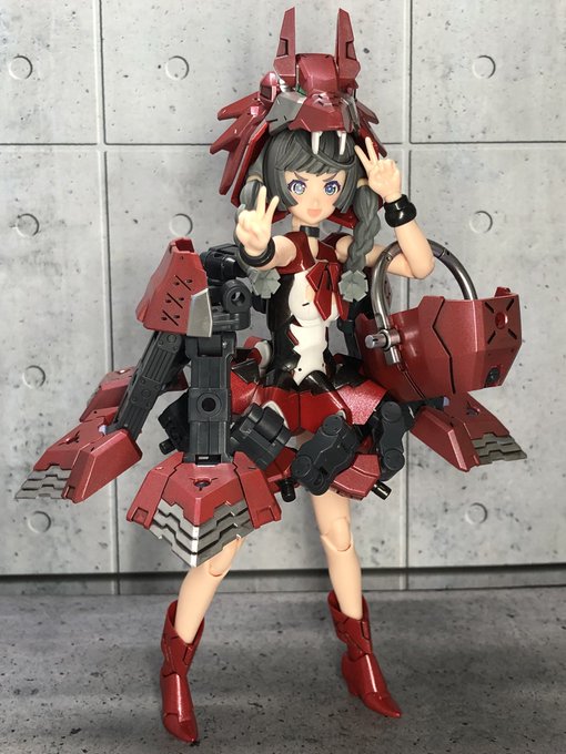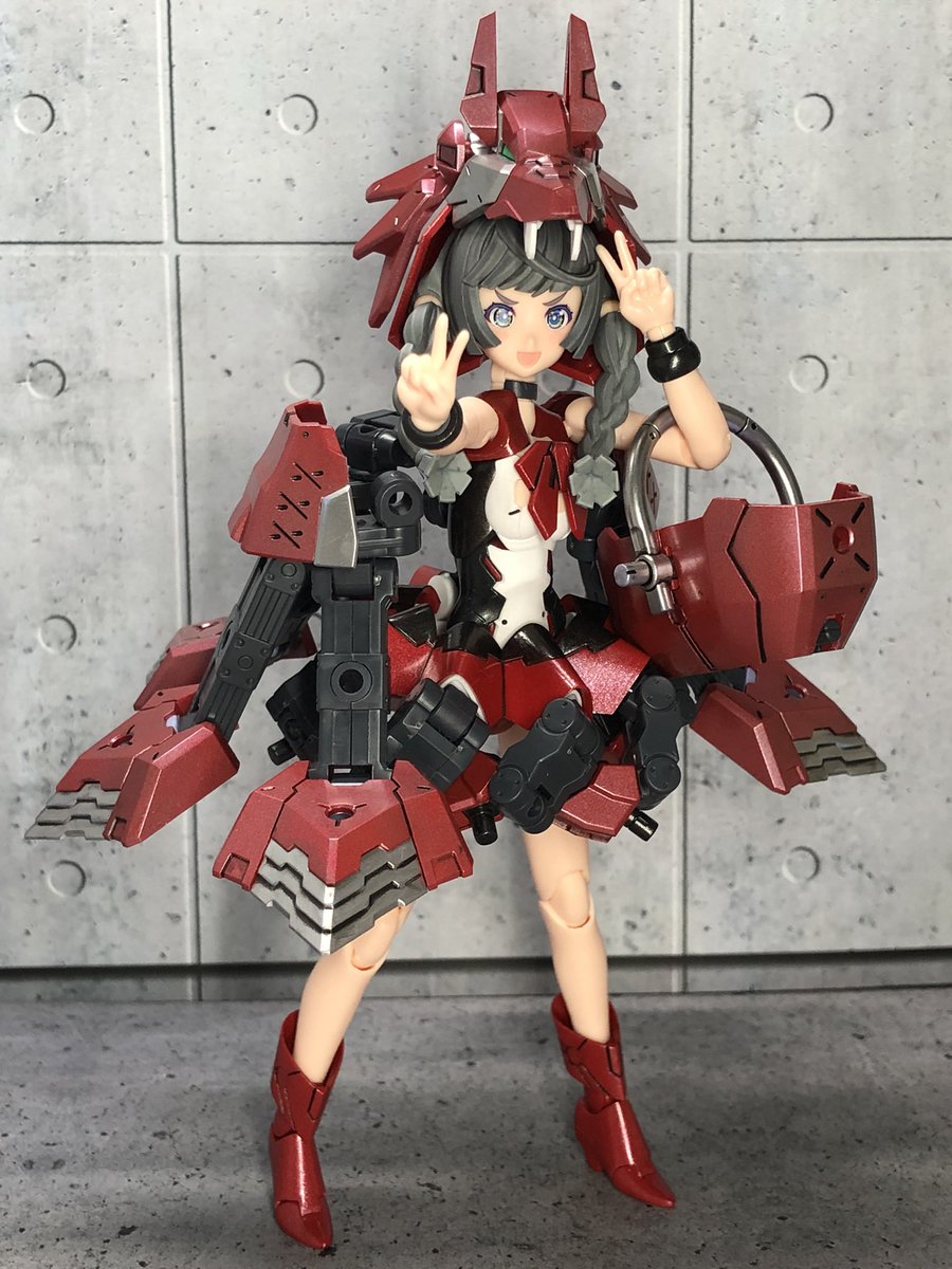メガミデバイス赤ずきん出来ました。 全塗装、と行きたかったですがPVを含むパーツをバラす程の時間が無くて一部断念。気が向いたらやります。 しかしまぁゴチャっとパーツ付け過ぎたw #kotobukiya #megamidevice #メガミデバイス #chaosandpretty #コトブキヤ #赤ずきん