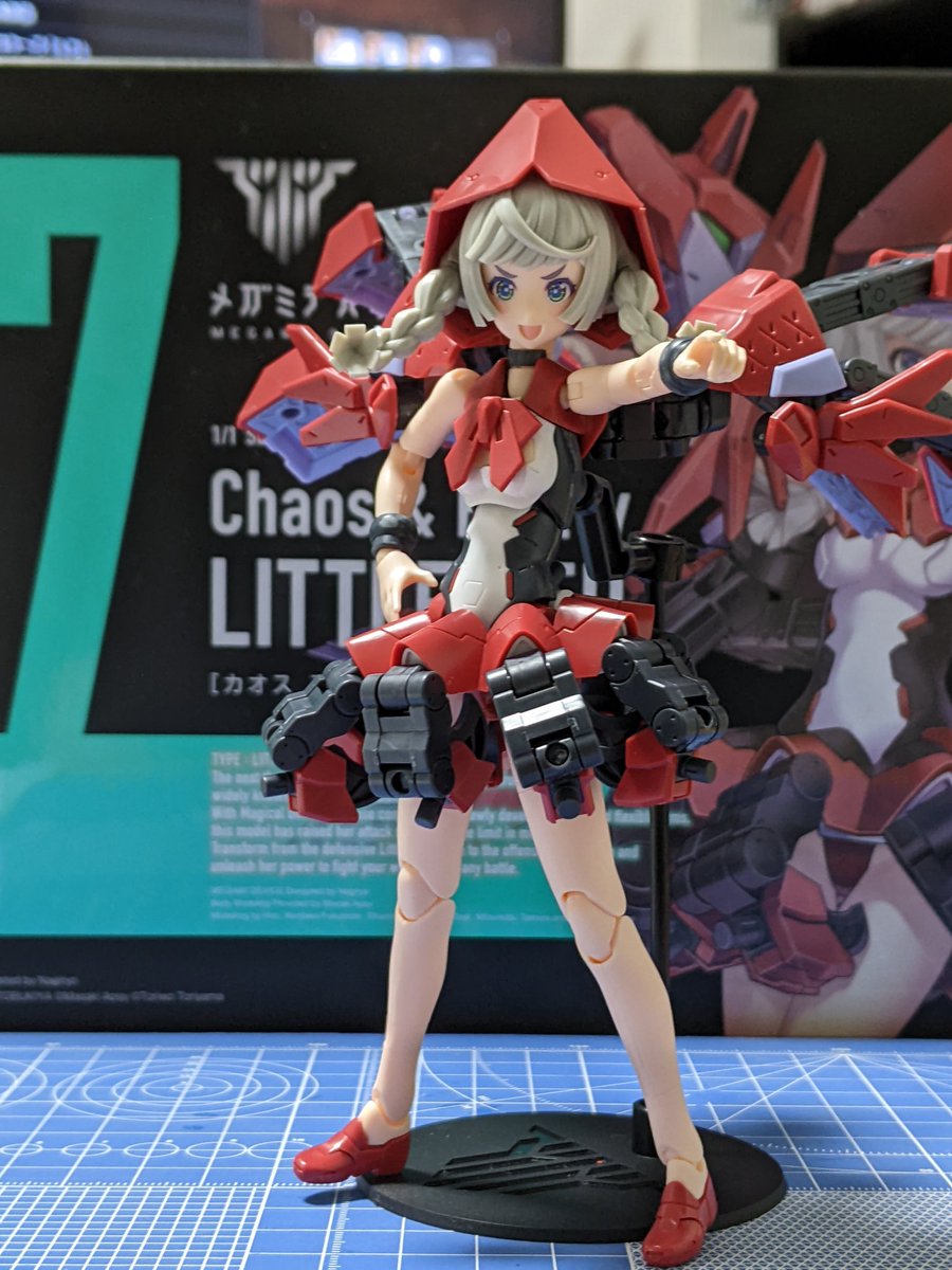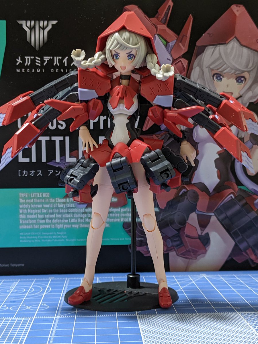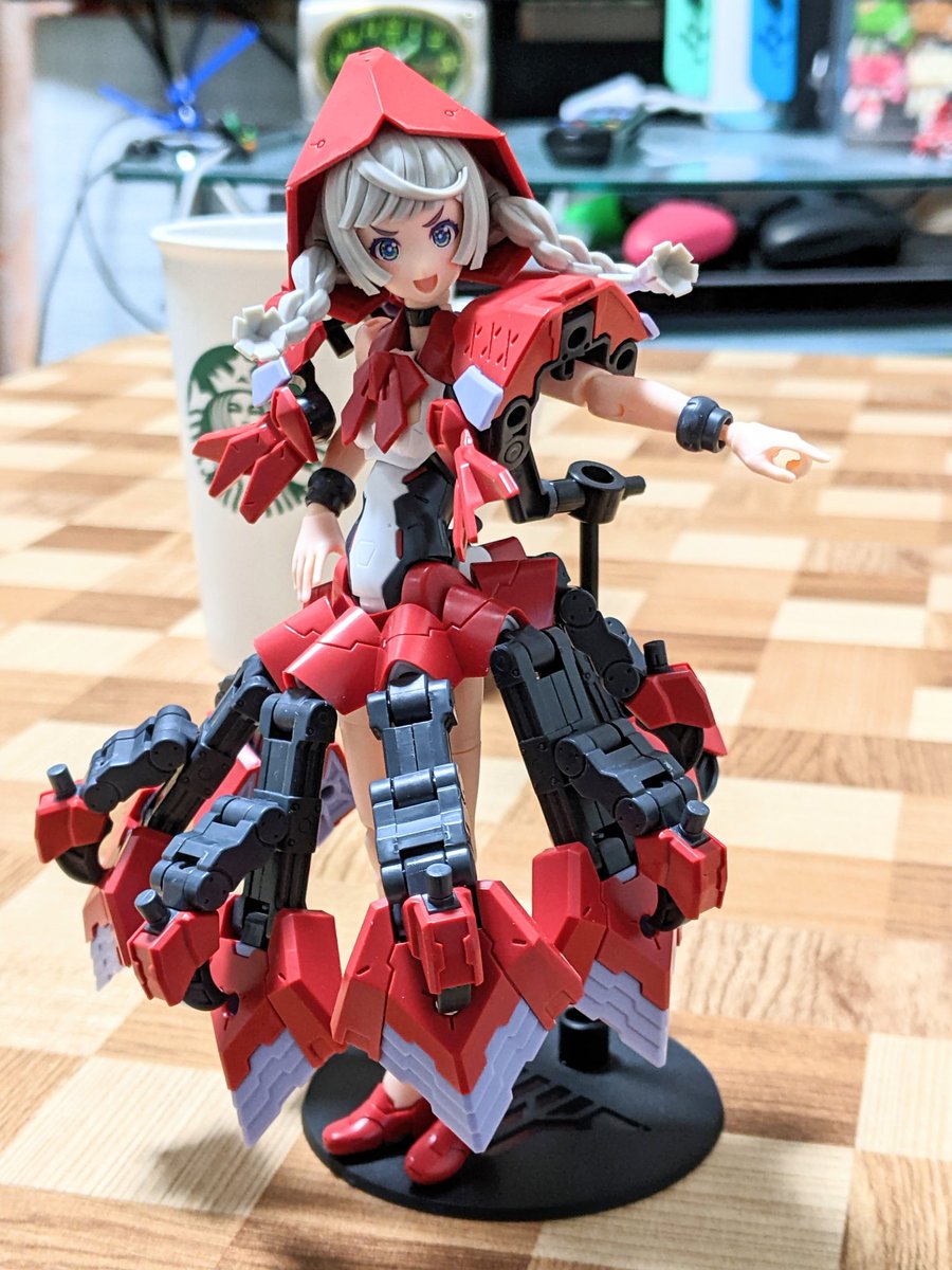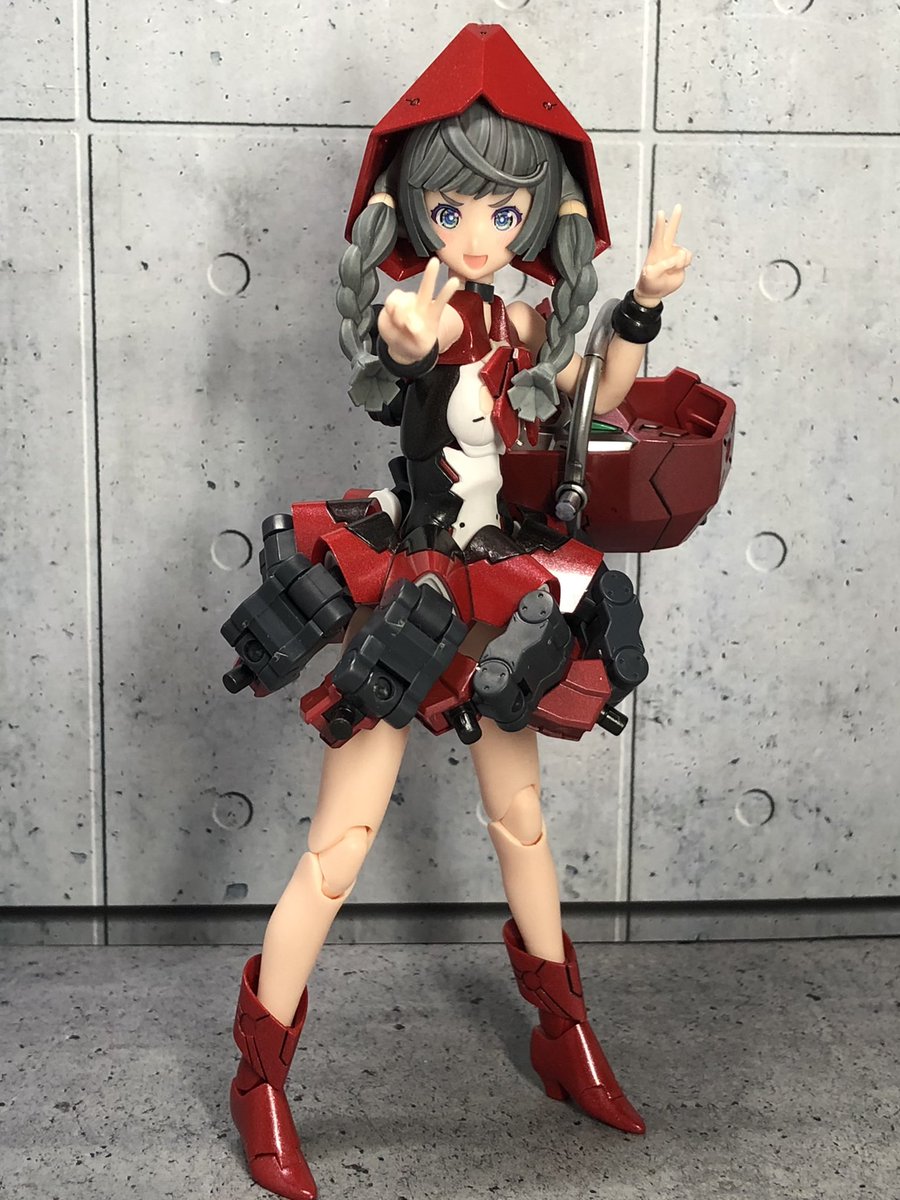 リボン、スカートまで塗ったんで写真追加。 なんかこう表情から感じ取れる 「吹っ切れてる感?」 みたいな 「ヤケクソ可愛い?」 的なのはどっから来るんだろw? #kotobukiya #megamidevice #メガミデバイス #chaosandpretty #コトブキヤ #赤ずきん