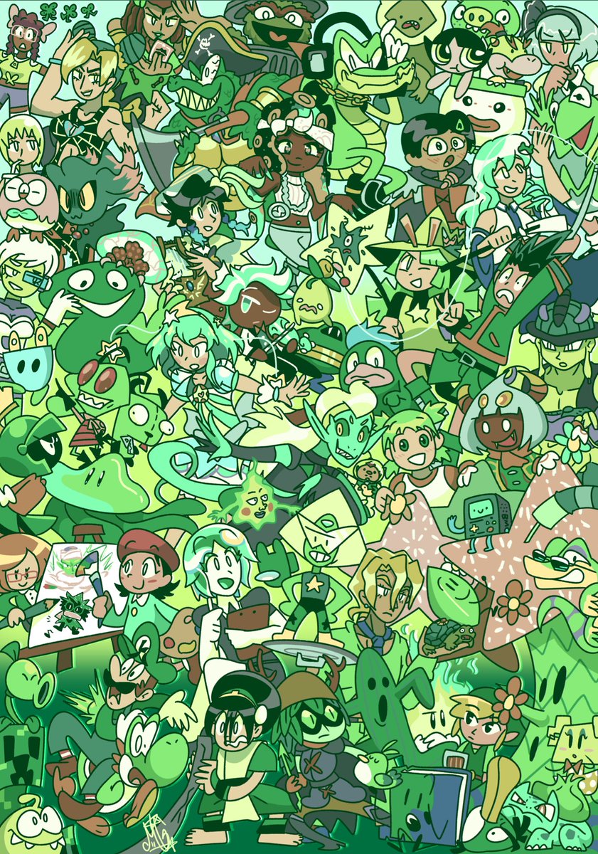 GREEN! Got carried away and drew maybe about 69 of them… This is still a relevant trend I hope! 💚🍀💚🍀 #green #art #illustration #drawing #characters #kirby #supermario #jojosbizarreadventure #greencharacters