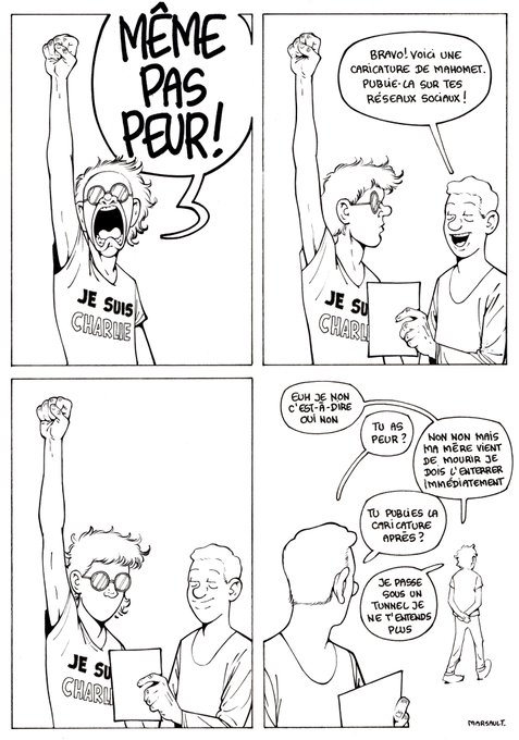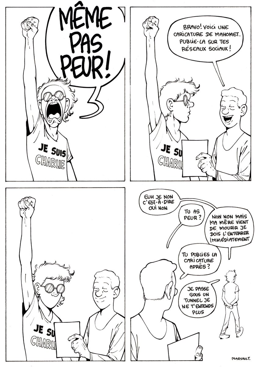 Today is the 7th anniversary of the terrorist attack against #CharlieHebdo cartoonists. Remember when everybody was Charlie?... How many "Charlies" still survive?... Below a comic that I did about it a while ago...