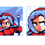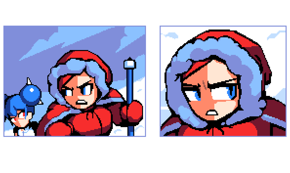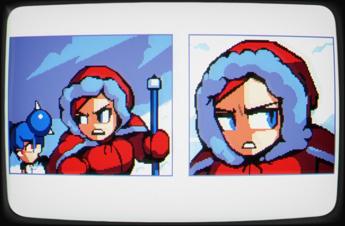 Carmine is kinda cute in her winter clothes, no? Blue's an android so she can deal with the cold no problem! #ChensoClub #pixelart