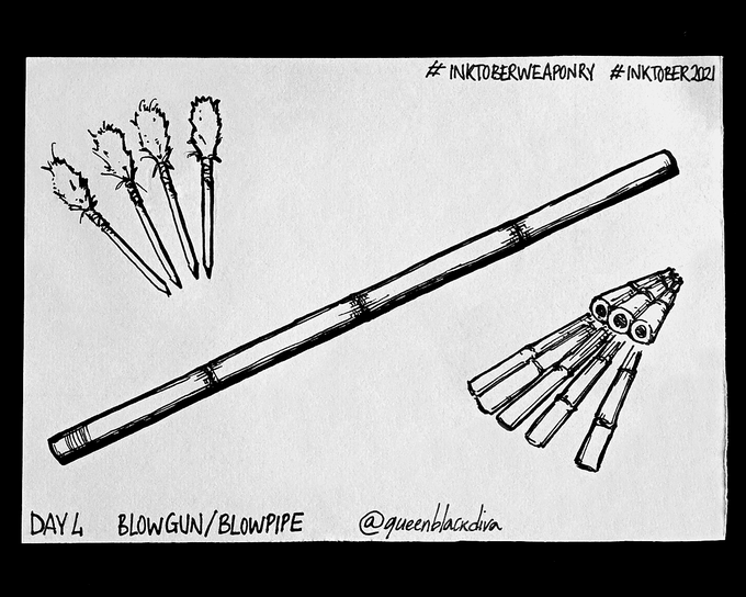 DAY4: Cherokee blowgun (Pictures in second slide are from google images) #inktoberday4 #inktober2021 #inktober #inktoberweaponry #blowgun #blowpipe #nativeamerican #cherokee #darts #rivercane #traditionalart #hatching