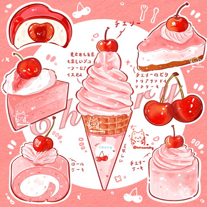 チェリー 🍒A series of delicious and cute desserts with cherry 🍧💖💖 #cherry #dessert #illustration #food #cute #drawing #digitalarts