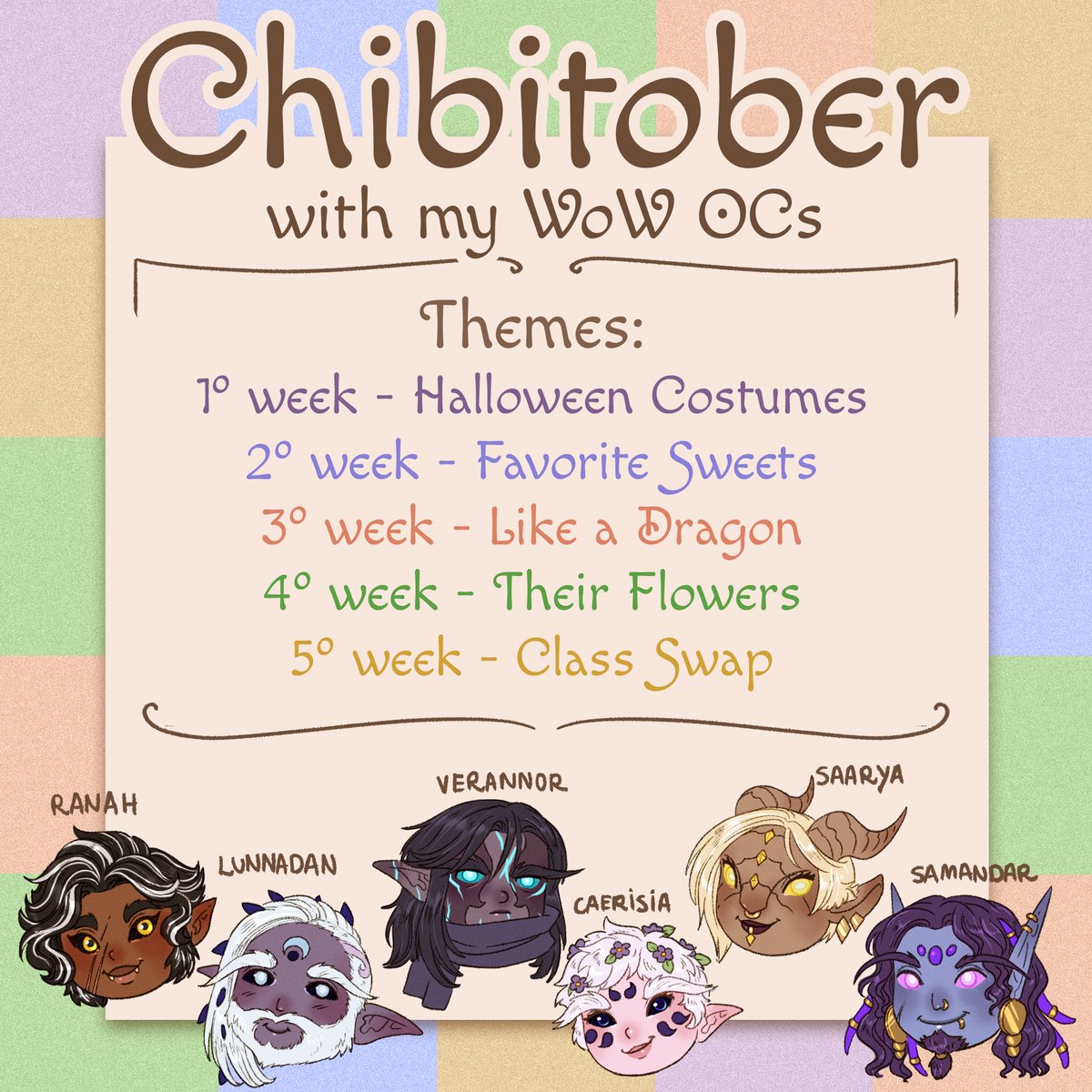 ✨Chibitober!✍️ This will be a thread with all the drawings I'm gonna do in October. I hope you guys don't mind seeing chibis of my OCs every day. 🎃🧁🐲🌸🔃 #chibitober #October