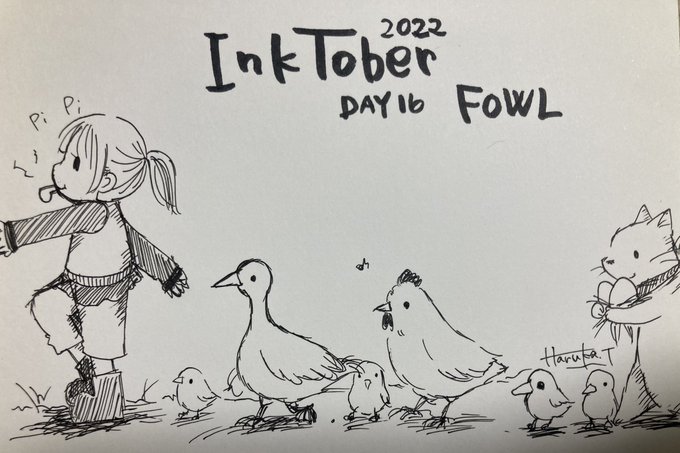 Day 16. Fowl/家禽 lil chick nd her moma . . . tags: #インクトーバー #Inktober #Inktoberday16 #inktoberfowl #fowl #chicken #chick #Halloween #Halloween2022 #art #farm #farming #animals #AnimalFarm