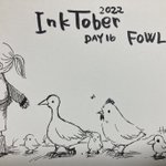Inktober day16 FOWL Domesticated birds of ducks, chickens and chicks marching #inktober2022 #inkart #art #kidlit #inktober #kidlitart #illust #Halloween #cat #fowl #chicken #duck #Chick