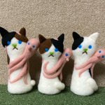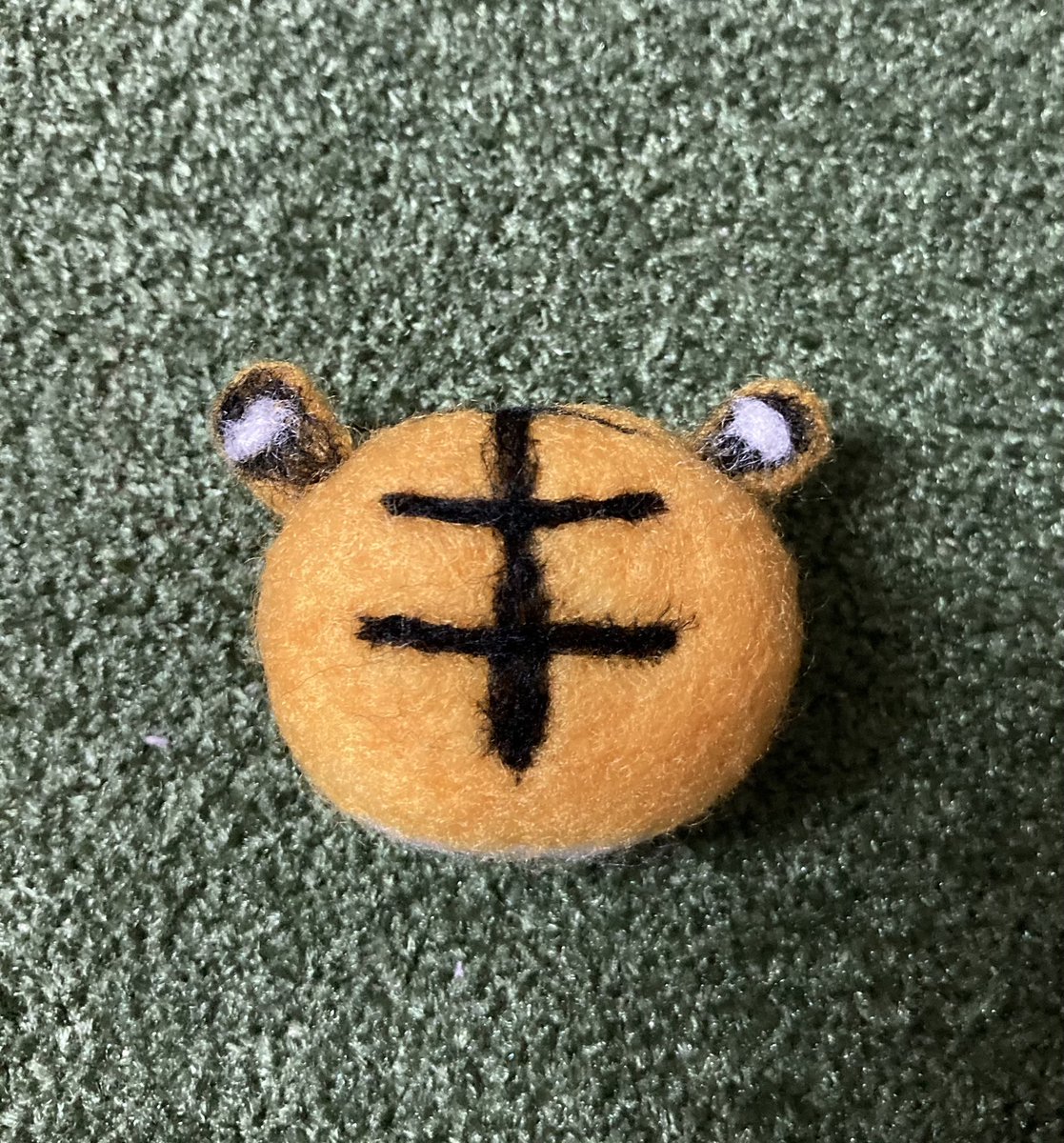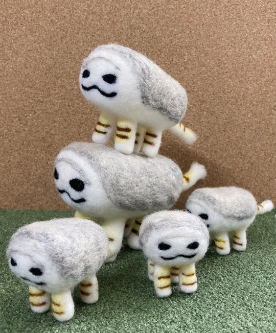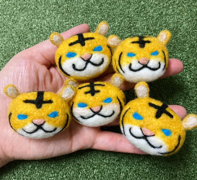 じゃーん✨ 今までで最大の虎子石ができたから、じゃーんっていってみた。小さい3匹がいつものサイズ。 虎子石専用タグを付けて、次の出店に連れて行きます。 #ChikuChiku #ちくちく #羊毛フェルト