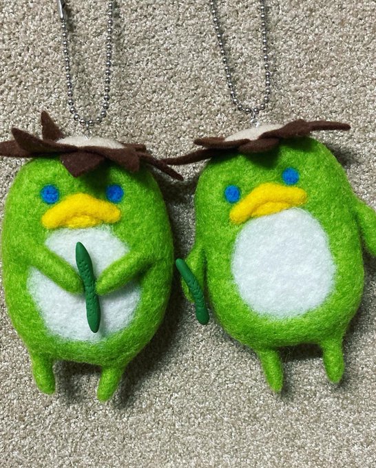 カッパ誕生〜✨今回はきゅうり大事&ノーマルの片手におやつきゅうり、の2匹になりました。3/13(日)のベルファーム手づくり市に連れて行きます。 日にちを間違えていたので再投稿です。12日ではなく、13日の日曜日です! #手づくり市in松阪ベルファーム #ChikuChiku #ちくちく #羊毛フェルト