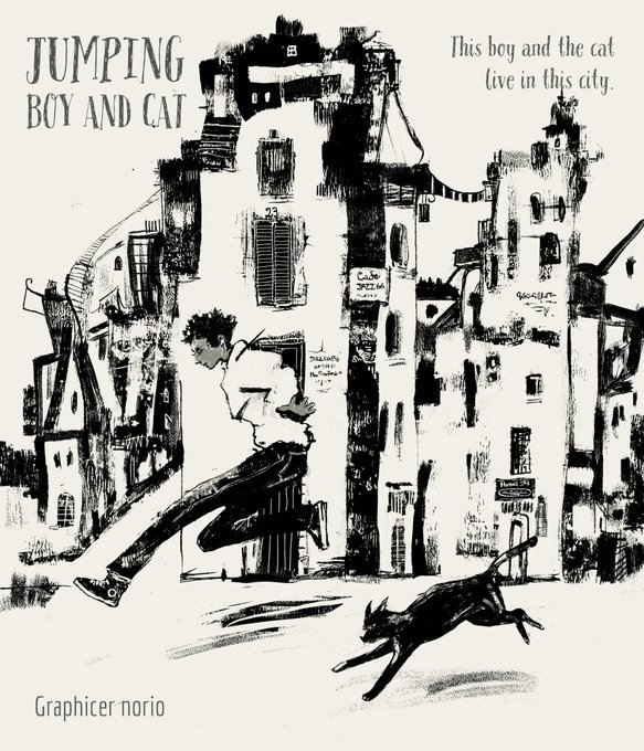 似た者同士 ジャンプする猫と少年 モノクロ線画 いつか色をいれよう #illustration #drawing #illustrationart #graphicart #picturebook #childrenbook #cat #catlover #絵本 #猫好き #artwork #artdirector