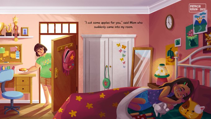 Cutting fruits, an Asian parent's love language 🍎 #kidlit #kidlitart #zonakaryaid #ArtistOnTwitter #artistindonesia #childrensbook #picturebook