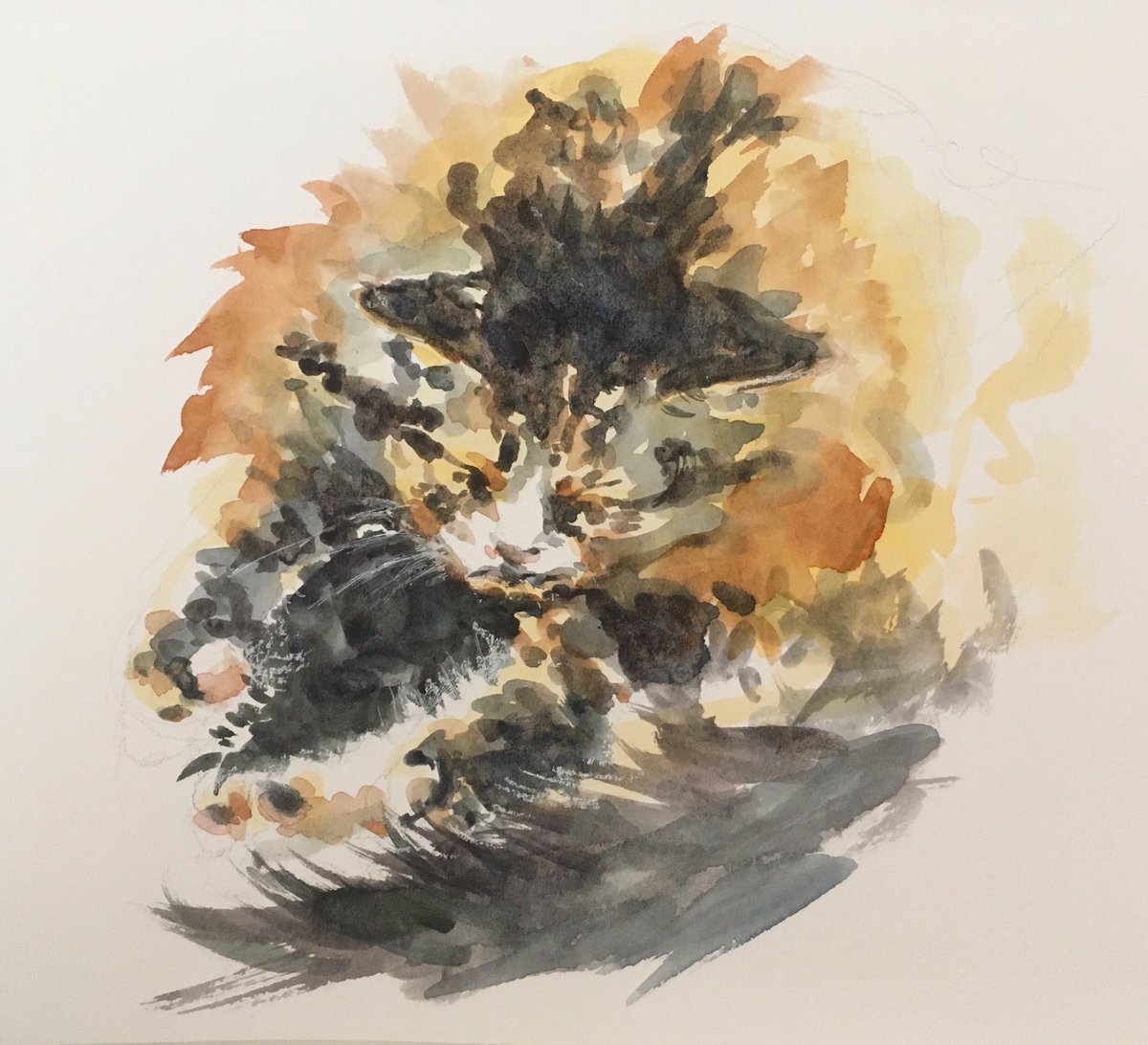 Sleeping Parsifal (…until he moved) * * * * #scbwi #CBIG #CBIGNYC #ChildrensBookIllustratorsGroup #childrensbookillustration #childrensbookillustrator #childrensbooks #childrensbookartist #illustration #drawing #dailydrawing #adrawingaday #watercolor #midnightatelier #parsifal