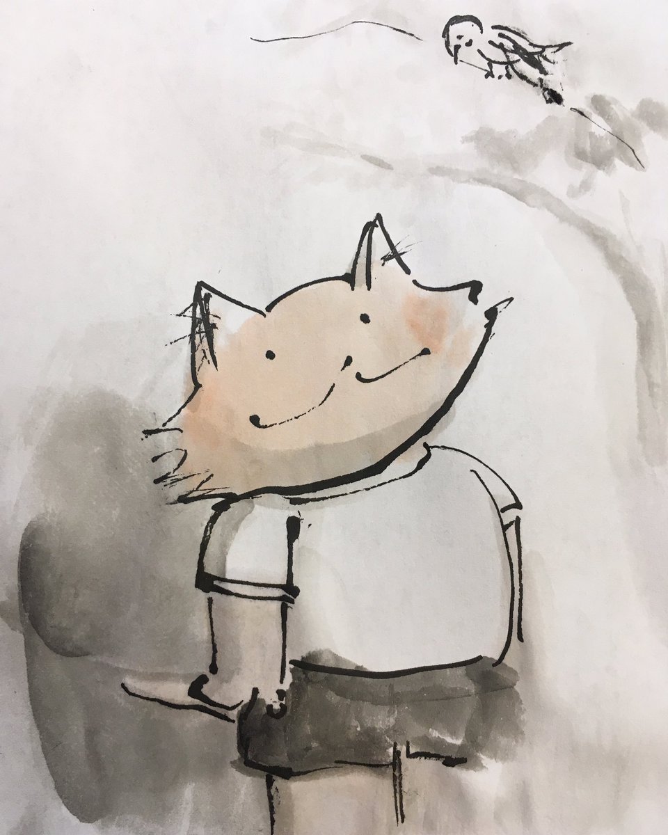 Kitty with Fish Inspired by great @horitomo_stateofgrace * * * * * #scbwi #CBIG #CBIGNYC #ChildrensBookIllustratorsGroup #childrensbookillustration #childrensbookillustrator #childrensbooks #childrensbookartist #illustration #drawing #penandink #midnightatelier #sumie