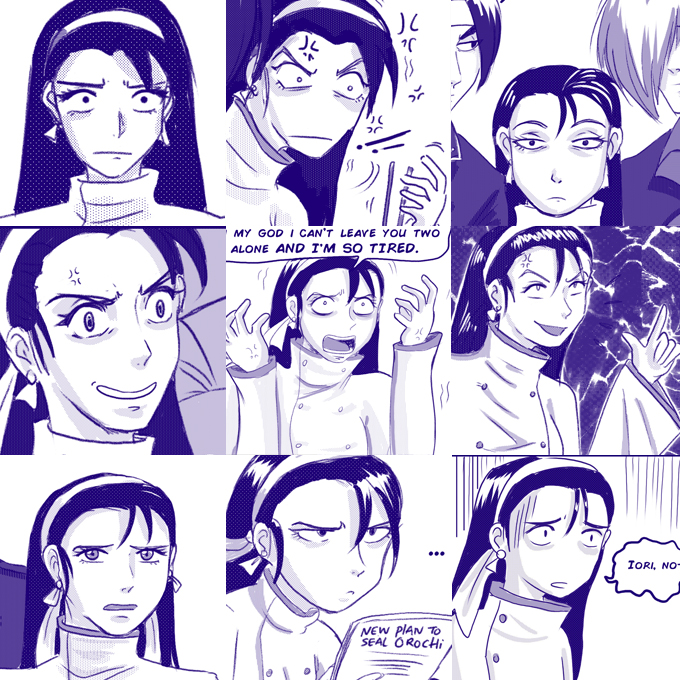 #KOFtober day 11: Grief The night before the start of the KOFXV tournament they visited Maki. #Ioriyagami #Chizurukagura #Kyokusanagi #SNKfanart
