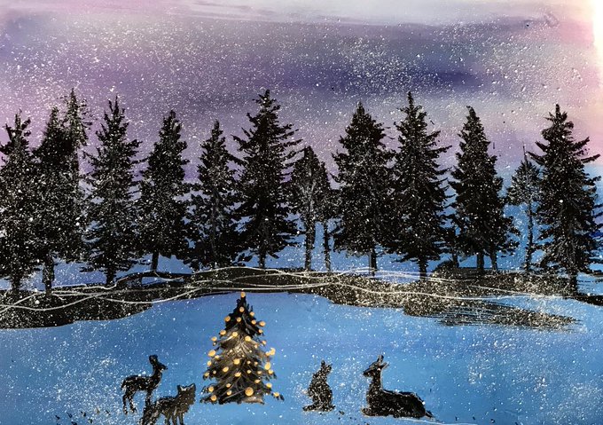 Wishing All My Followers A Fabulous Christmas. Alcohol Inks and Windsor and Newton ink. #artistsontwitter #christmascards #contemporaryart #painting