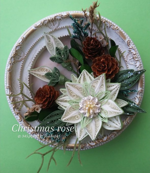 昨年の今頃に、初めて作ってみたクリスマスローズ。今年になって青い小花のドライフラワーを少し付け加えてみました。 #quillingart #papercraft #christmasrose #handmade #クイリングアート #ペーパークラフト #クリスマスローズ #ハンドメイド