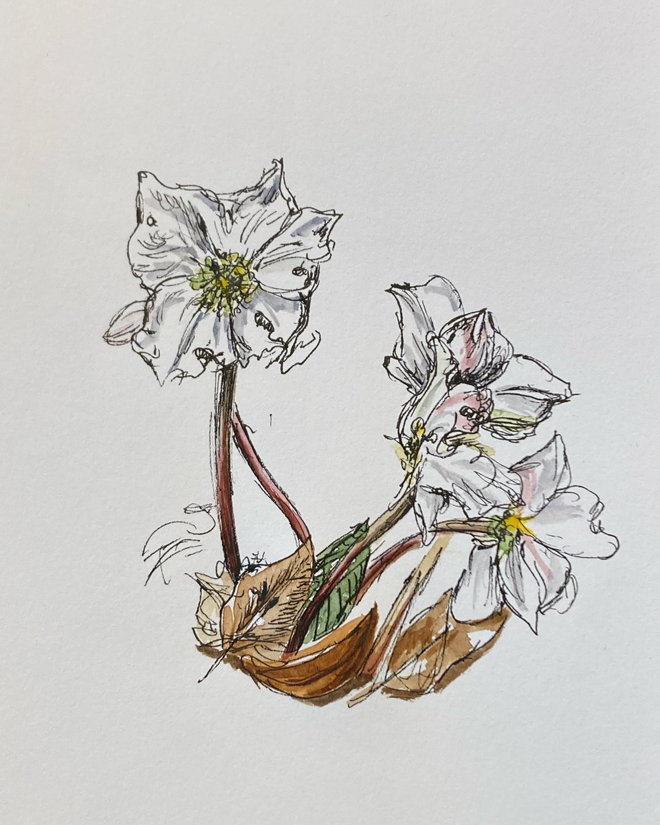 A beautiful Christmas Rose from the White Garden at @SnugHarborCCBG today. I was looking for signs of spring despite the snow squalls that passed through. #art #ink #watercolor #sketch #flowers #garden #christmasrose #statenisland