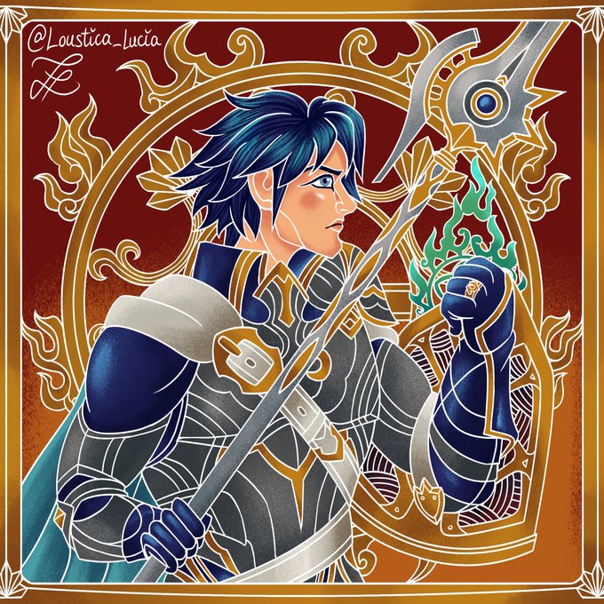 Chrom in the style of #FireEmblemEngage mural of Emblems! 😊💖 I really hope to see my favorite FE character back in this game! That artstyle is so unique?? It was really fun to try to replicate it! #Chrom #FireEmblem #FireEmblemAwakening